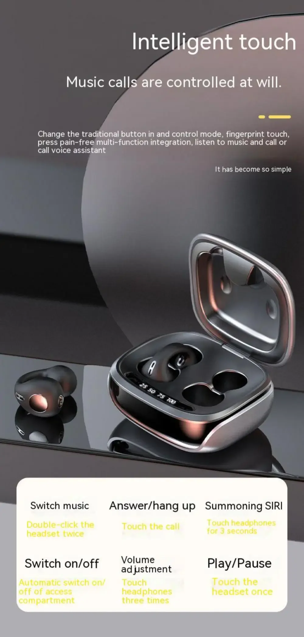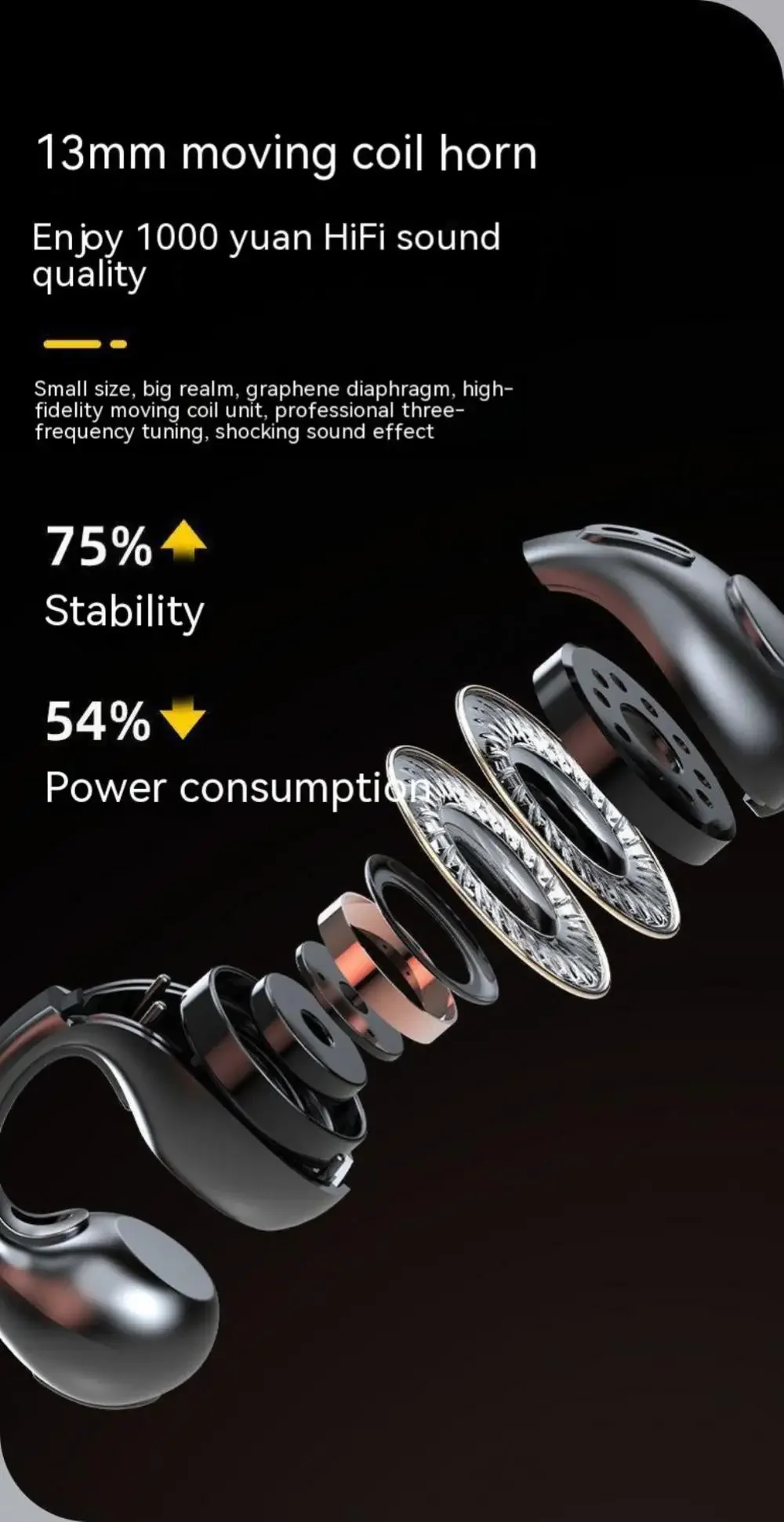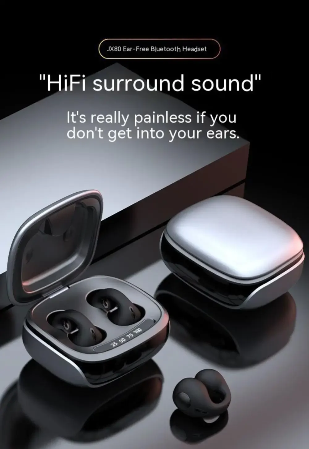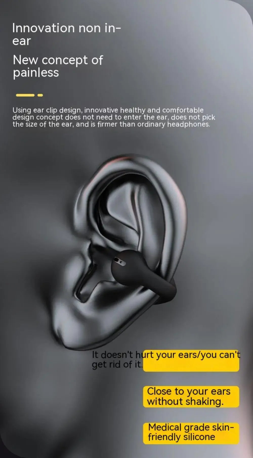 🎧 Discover a new wave of sound with our Galaxy Wireless Bone Conduction Headphones! Designed with a unique ear clip design, they provide a safe and comfortable listening experience without the need to insert them into your ears. Enjoy clear, high-quality sound through upgraded 13mm moving coil speakers and an LED high-definition digital power display that keeps you informed at a glance.⭐ Why you need it:- No ear discomfort: The ear clip design eliminates the need to insert headphones, preventing ear fatigue.- Superior sound quality: Experience clear audio with premium 13mm speakers for your favorite tunes.- Easy connectivity: Equipped with advanced Bluetooth 5.3 technology, these headphones are fully compatible with both Android and iOS devices.💚 Why you’ll love it:- Lightweight and secure: The on-the-go design keeps these headphones firmly in place during activities.- Hands-free convenience: Perfect for multitaskers, enjoy calls and music without any hassle.- Stylish and modern: Upgrade your audio experience with sleek aesthetics.🌟 How to use it: Simply clip the headphones onto your ears for a comfortable fit, connect via Bluetooth to your device, and enjoy your favorite playlists or podcasts!🛡️ Limited time offer! Grab your pair of Galaxy Wireless Bone Conduction Headphones today and experience sound like never before!