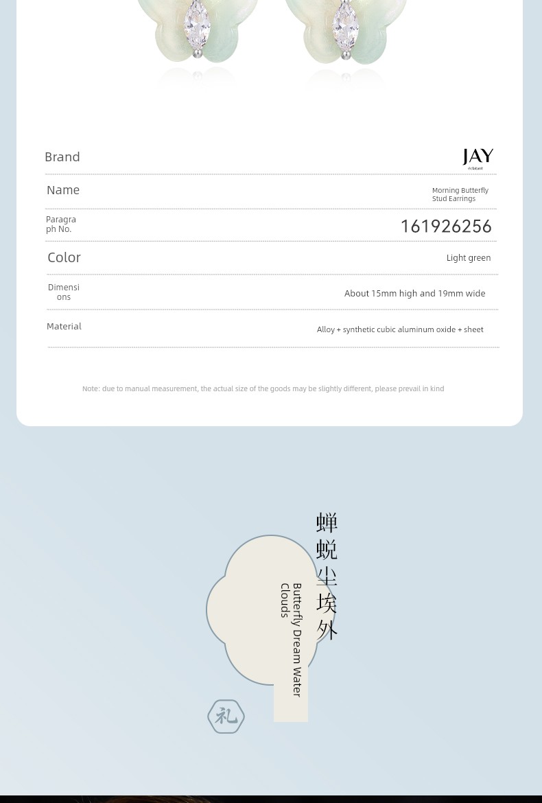 ✨ Elevate Your Style - Discover the beauty of our Mint Green Butterfly Stud Earrings, designed to add a touch of elegance to any outfit this summer! These stylish, special-interest earrings are a must-have accessory for every fashion-forward woman. With their eye-catching mint green hue and delicate butterfly design, you'll stand out effortlessly.💖 Why You Need It:- Perfect for enhancing summer outfits with a pop of color.- Unique butterfly design that adds charm and whimsy.- Lightweight and comfortable for all-day wear.- Versatile style suitable for both casual and formal occasions.🌷 Why You’ll Love It:- Timeless design that complements any wardrobe.- Made with high-quality materials for durability.- Ideal gift for loved ones or a treat for yourself!💫 How to Use It:- Pair these earrings with a sundress or your favorite summer top for a chic look.- Great for daily wear or special occasions; simply clip them in for instant sparkle!🛒 Limited Time Offer: Enhance your jewelry collection today! Our Mint Green Butterfly Stud Earrings are a trendy addition that you won’t want to miss out on. Grab your pair now while supplies last!